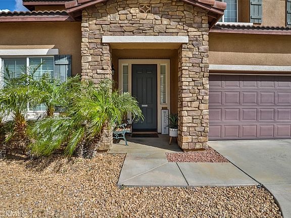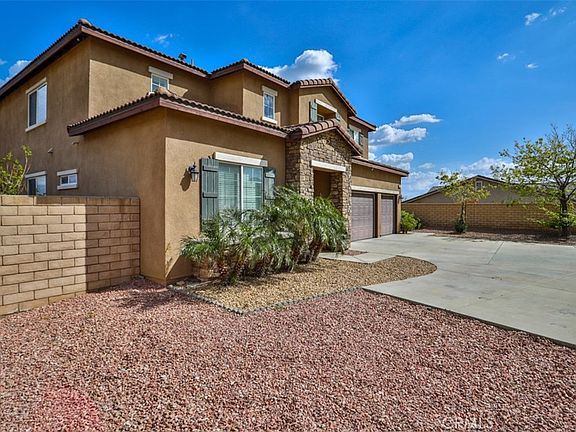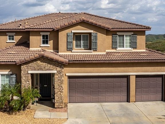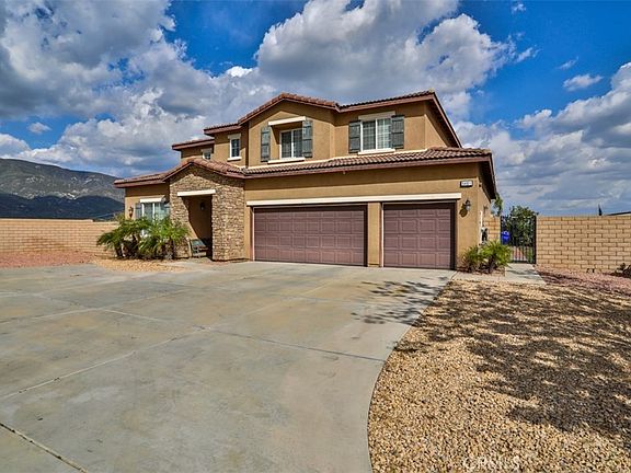 Breathtaking mountain views! This gorgeous two-story haven nestled in the desirable San Bernardino foothills built in 2013, features 5 BR, 2.75 BA, 3,106 sq ft, on an expansive lot size of 17,200 sq ft. Upon entering, step in to grand cathedral ceilings and stunning wood laminate flooring that leads to the formal living room which can be used as a dining room. The main floor BR is perfect for parents or guests, and the adjacent BA has a walk-in shower for easy and safe entry. The chef's kitchen has granite countertops, stainless steel appliances, an abundance of cabinetry, tiled back splash, and a center island making meal prep a breeze. Enjoy your morning coffee in the sunny breakfast nook that looks over the large family room with a fireplace, built-in book shelves with storage, and plenty of natural light. Be greeted upstairs to a cozy loft to relax at the end of the day. The elegant primary suite has a large BR, and the primary BA has a soaking tub, separate shower, dual sinks, and a large walk-in closet. The newly renovated balcony off the primary BR offers breathtaking views of mountains and peek-a-boo city lights. Also upstairs are three additional spacious BR's, a secondary BA, and a laundry room for convenience. Outdoors, gather around fire pit on chilly evenings, creating a cozy ambiance that envelops the entire rear and side yard with lush landscaping, a cactus rock garden, plenty of shade under the pergola, and a BBQ for grilling delicious meals with family and friends. The patio deck wraps around the rear yard to the side yard giving ample space for entertaining large events, and can also be modified to accommodate a large RV. Meticulous low maintenance rockscapes adorn the front and side yards. The 3-car attached garage has a 120V EV charger for Eco-conscious individuals. Conveniently located near shopping centers, parks, schools, and nearby Cal State San Bernardino. Welcome home to comfort living, and serene tranquility!