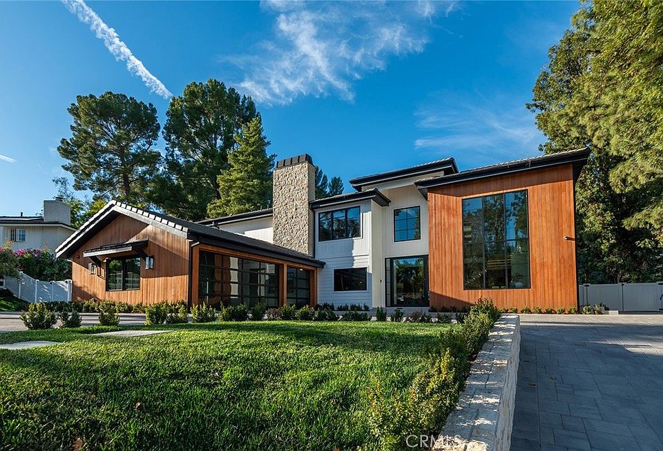 This beautiful brand new estate is nestled on a prime, quiet cul-de-sac in the heart of Hidden Hills and is sited on a very private 1.27-acre lot. Offering 6,002 square feet of quality living space, the seamless, open floor plan is flooded with natural light, with every detail carefully designed for comfortable living and modern convenience. Highlights include a gorgeous, center island chef's kitchen, plus prep kitchen (with Lacanche Range, and Wolf/Sub Zero appliances), opening to the large family room with two-sided fireplace, plus a luxurious home theater with acoustic upholstered walls & Dolby Atmos immersive sound system, a full wet bar with a 156 bottle refrigerated wine wall, casual living & dining rooms for easy entertaining, a custom office, an exercise room, and a second upstairs study. There are four en suite bedrooms, each beautifully finished. The primary suite is an expansive retreat, featuring a sitting area with fireplace, a spa-like bath with soaking tub , large glass encased steam shower, and loads of closet space. Additional features include vaulted ceilings, European Oak floors, skylights with solar powered shades, a Control 4, smart home automation system that allows you to control lighting, temperature, security & entertainment with ease, and a convenient mud room located at the entry to the three car garage. Step outside to discover a beautiful oasis. The grounds offer a raised, salt water infinity pool that cascades like a fountain, a large covered patio with fan & ceiling heaters, perfect for outdoor dining and entertaining, a built-in barbecue center, two fire pits, sports court, fruit & olive trees, an herb garden, loads of grass & play areas, and lush privacy landscaping with additional room for a future vineyard or orchard, all combining to create the feeling of a peaceful retreat. The home also offers easy access to the entry gates and nearby schools & shopping, and is close to the community center with pool, tennis courts, and recreation area. It's very rare to find a new home of this size and scale in Hidden Hills, so don't miss this one!
