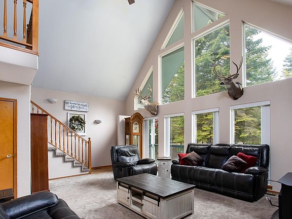 Fantastic floor plan on this beautifully wooded 5 acre parcel, close to everything, on all paved roads. Nice 30x40 shop with concrete floor and huge lean to. New horse barn with 2 acres fenced and ready for your horses. Property is very private. 2 beautiful floor to ceiling wall of windows on either side of the home. Master suite is huge with gorgeous tiled walk in shower, nice closet and storage, tons of counter space. Large great room with soaring ceilings and wood stove, nice loft above, kitchen is open with great counter space, all main level living. Huge bonus room and 2 more bedrooms, one non conforming, could easily convert back to a 3 car garage. Large back deck looks out to fenced yard with lawn and sprinkler system. Nice wood storage area, Virtual tours available