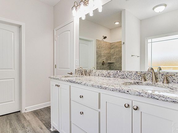 This is a Beautiful "must see" modern farm style house with completion date of END OF FEBRUARY!!!NEW CONSTRUCTION INCLUDES: Quartz in kitchen/master. Hardie/brick exterior. 0.67 acre lot with beautiful oak and hardwoods. No HOA. Superior construction with steel rods from bottom plate thru top plate for extra structural integrity. Tiled master shower! 2 car garage.Smart/insulated garage door. Front door with double side lights and glass transom above. 10ft plate height in living area with a double tray going up to 12 feet in living room with custom tongue and groove accent in tray. Custom stained cypress shutters and columns. LVP Flooring with carpet in bedrooms. Energy efficient heat pump compliant with all 2026 current energy codes. Including 18 pallets of sod and landscape package. Includes stainless whirlpool microwave range vent combo, range, dishwasher . Roomy front & back porch. Drop down ladder with extra decking for additional attic storage, Front septic system to leave large backyard open to endless opportunities for pools, sheds, playgrounds etc.