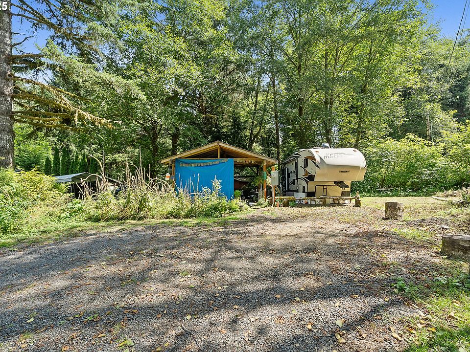 Escape the summer heat at this coastal forest retreat by pulling your RV in seasonally or realize your tiny home dreams on a permanent basis. Nestled beside a year round creek, native plantings create a low maintenance oasis with unusual flexibility just 15 minutes from the beach. Unicorn level lot with no flood zone or wetlands- zoning allows for RV living (part or full time), tiny home, single wide, or stick built cabin. Seller has made major improvements, including new septic tank and inspected & approved drainfield in '23; power pole relocated and variance on setbacks secured from the county to increase building site size; underground internet; county approved road approach for driveway and parking. The property has a 17'x24' ''hay shelter'' covered area for outdoor living space and is ready for your vision.