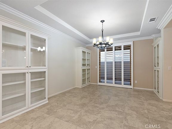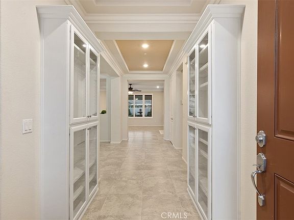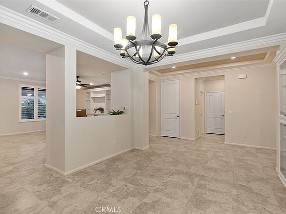 The Best of the Best! Highly desirable The Gathering model in the premiere 55+community of Solera Diamond Valley by Del Webb! Remarkably high end & elegant 3-Bedroom, 3-Bathroom, 2,457 square foot, single story home. This home is absolutely gorgeous! The moment you enter this home you are greeted with soaring tray ceilings, crown molding, custom built-in cabinets, custom doors, tile flooring and plantation shutters throughout. The open concept floor plan offers a formal dining room, additional dining area off the kitchen, sunroom with a cozy fireplace, living room with a fireplace, built-in entertainment center and desk and a gourmet kitchen overlooking the living room. The wonderful kitchen features a large center island perfect for entertaining, upgraded stainless steel appliances, walk-in pantry, full back splash, slab granite counter tops, and an ample number of gorgeous cabinets. The primary bedroom suite features bay windows, crown molding and door leading out to the back patio. The primary bathroom has crown molding, bathtub, walk in shower, vanity area and a wonderful walk-in closet. The spacious guest room is its own suite with walk in closet and private bath with step in shower. There is a large two car garage with several quality cabinets, overhead storage, and features epoxy flooring. The outside yard and beautiful patio are exceptionally minimal maintenance with artificial turf and set up for outdoor living. The front and back drought tolerant landscaping has been professionally done. Fantastic location at the end of a cul-de-sac and steps to a very walkable pet friendly park and lush Paseo. Solar is prepaid for approximately 11 years, Plantation Shutters. Active adults will cherish the boundless social and recreational opportunities in the community and surrounding region. Solera Diamond Valley community center offers a 23,000 square-foot Mountain View Lodge featuring a fitness center, walking track, library, billiard tables, meeting rooms, library, sitting areas with fireplace, indoor pool, and spa and two outdoor pools and spa. Engage in friendly matches on the Bocce ball, tennis, and pickleball courts, completing a comprehensive range of activities for an enriched 55+ living experience. Come inside and look today!