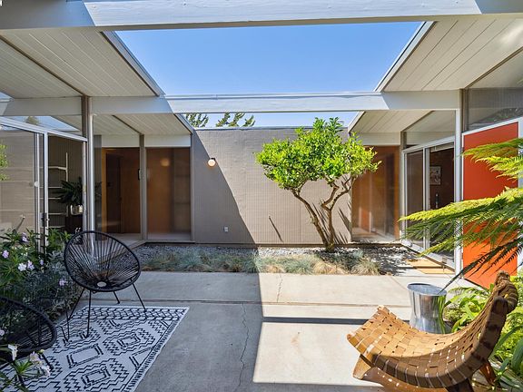 Rarely available & highly desirable Eichler home with captivating Bay views in Castro Valley’s fabulous Greenridge neighborhood. Built in 1960, & first time on the market in almost 30 years for this iconic mid-century modern gem designed by renowned MCM architects Jones & Emmons with a lot of the original details that make the home wonderfully Eichler. There’s the impressive open atrium entrance that leads you into the great room featuring a gorgeous wood burning brick fireplace, & direct access to the outdoor space. Stunning original mahogany paneling in excellent condition throughout, original closet doors, skylights, period globe lighting, attached garage, & carport. Modern improvements in all the right places including electrical, heating, & roofing. 4 bedroom, 2 bathroom including an expanded primary en-suite with private split bath & walk-in closet All situated on a massive private lot of over 15,000 square feet with stunning westerly views of the Bay, surrounding hills, & valley lights with plenty of space for an orchard or ADU.