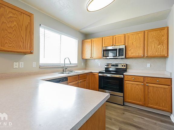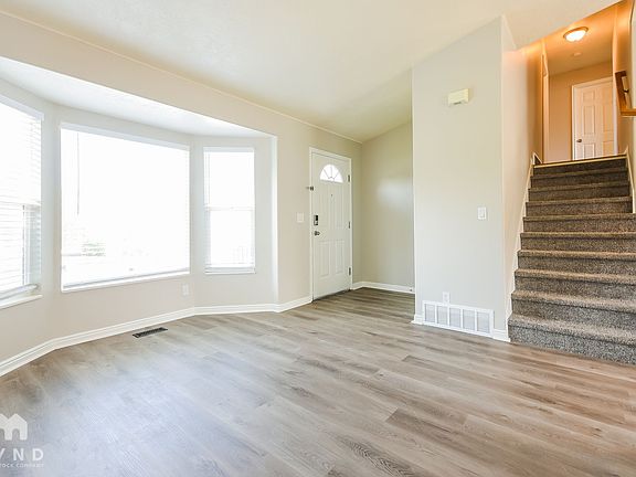Welcome to a spacious two-story home at 5463 W Ridge Hollow Way, offering 2046 sq ft of comfortable living space. This residence features a total of four bedrooms and three bathrooms. The main floor includes a bright living room, a breakfast nook, and a kitchen with warm wooden cabinetry, white countertops, and a full suite of stainless steel appliances. One bedroom and a half-bathroom are also located on the first level. Upstairs, you'll find the main bedroom, which is a peaceful retreat with a walk-in closet and an attached full bathroom. Two additional bedrooms and another full bathroom complete the second floor. A basement provides extra versatile space for a family room or home gym. This home is also a smart home, outfitted with a smart lock, thermostat, and hub, providing modern convenience and security. The community offers a playground. Located near major routes like UT-154 and I-215. Don't miss out, call us today to schedule your tour!