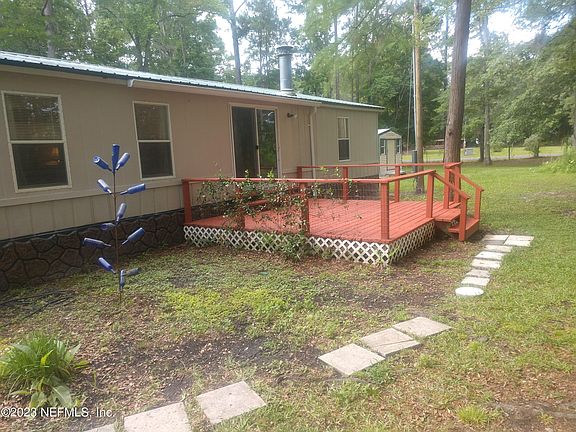 This is a recently- rehabbed 2 bedroom, 2 bath, 1200 SF double-wide mobile home which features new kitchen, new vinyl plank flooring, new windows, new hot water heater, new water filtration system, a stainless steel fridge, a gas stove, updated plumbing, a fireplace, a newer AC, and metal roof. The property is fully fenced. The front yard is fenced separately. Your family dog or children will have ample space in a secure area to play. Be sure to notice the NEW power pole and outside panel box, a 9x12 storage building, the circular drive and 2 pump houses. The newish washer and dryer is include include