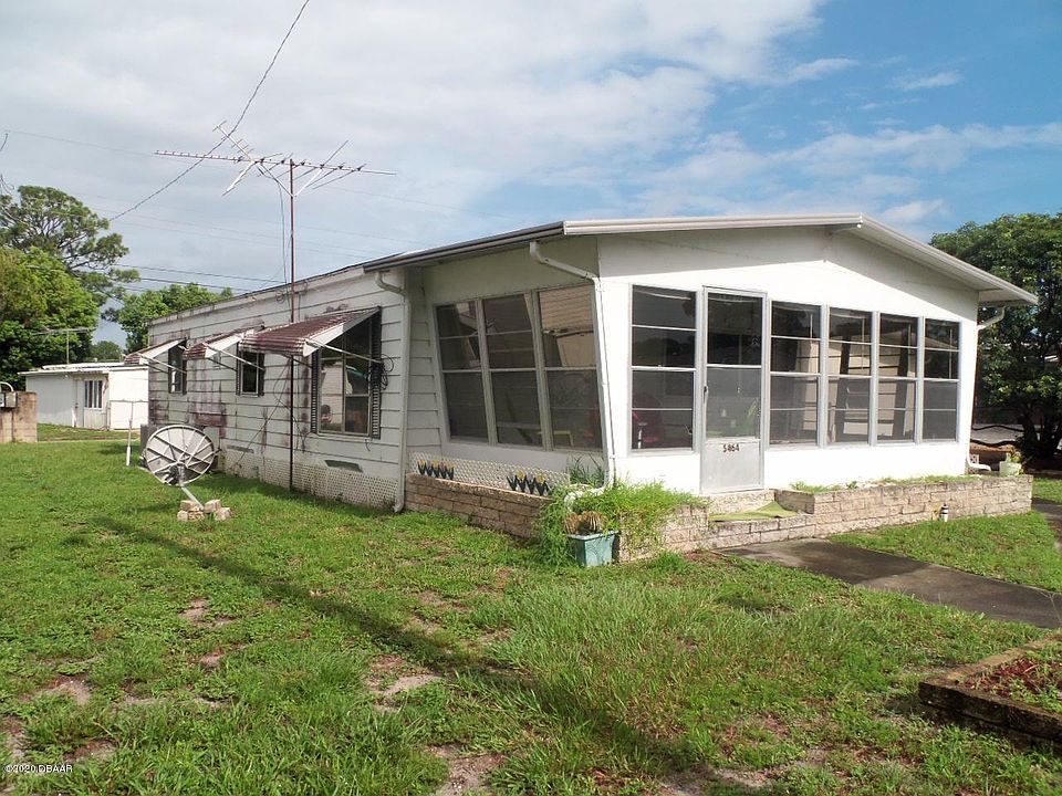 Super clean Double Wide on it's own land. Large and roomie Florida Room overlooking the street. Great place to watch your Sunrises... Wonderful 2 Bedrooms, 2 Baths, and nook's to accommodate guests and friends. What a charmer this one. Carport around back off of private service street for owners. HVAC renewed last year. Wood floors throughout. Yes, all refreshed and clean.