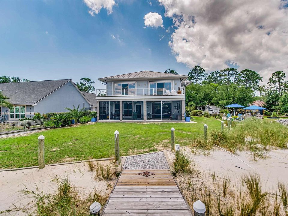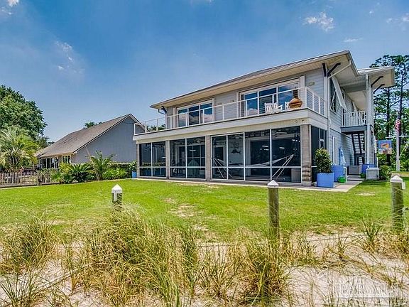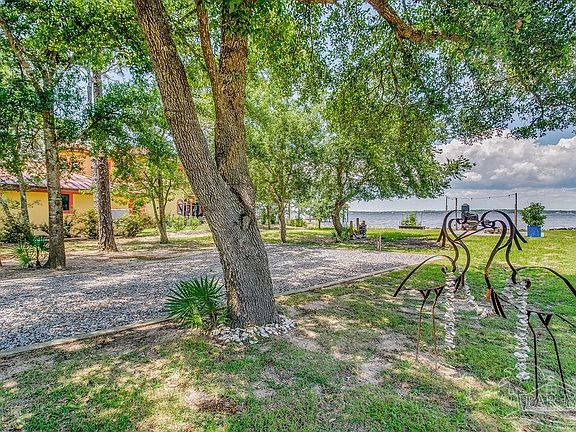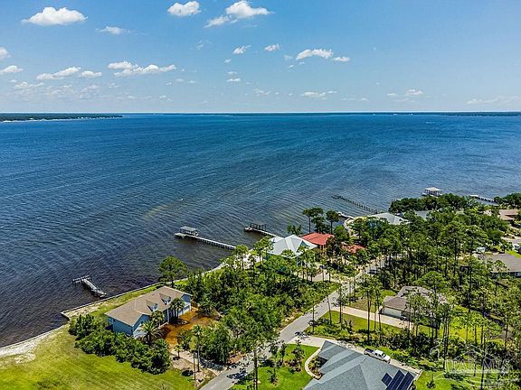 Feel safe and secure in this hurricae resistant Insulated Concrete Form (ICF) home, high elevation, never flooded, on 220 ft double waterfront lot with RV/boat storage, in a gated community. Construction: ICF wind rating of 250 mph with 58% better R value performance than conventional wall systems. All Florida wind mitigation requirements met. Peel and Stick synthetic underlayment, covered by standing seam Galvalume metal roof. Hurricane Impact Glass. Bahama and accordion hurricane shutters. Other features include: 8” interior doors and garage doors. 3 ft overhangs, sprinkler/drip system, outdoor shower, 12ft x 38ft Screened in porch, energy efficient 5 ton HVAC system (installed Sept 2020), 2,280 sq ft garage with 7 vehicle capacity Fabulous Bay Views Include: Sunrise and Sunset, Dolphin watching, Herons, Pelicans and other resident and migrant birds, waterfcraft, changing weather systems. All of this is located on beautiful Innerarity Island, close to Perdido beaches and Naval Air Station Pensacola!