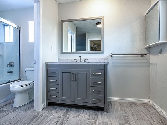 - RoomBathroomFeatures: Shower in Tub, Bathtub, Shower, Double Sinks In Master Bath, Remodeled, Upgraded, Granite Counters, Exhaust fan(s), Vanity area, Stone Counters
