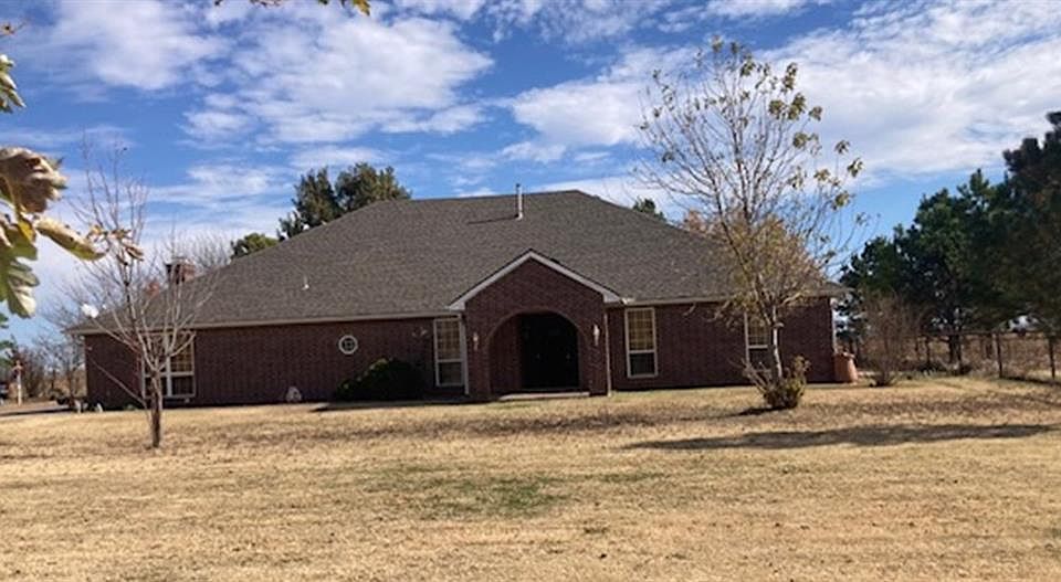 Discover the perfect blend of space, views, and functionality on this 11.63-acre property in a highly desirable location. The expansive home welcomes you with generous living areas, beautiful wood flooring, and both indoor and outdoor fireplaces that create warm gathering spaces year-round. The kitchen offers a breakfast bar, canned lighting, ample cabinetry, and a custom island with built-in outlets, while a secondary dining area includes a convenient butler’s pantry. The office can also serve as a fourth bedroom, and an additional living area features soft carpet and crown molding for added comfort. The primary suite is a true retreat, complete with wood plantation shutters, a large walk-in closet with direct access to the back patio, and plenty of room to relax. Two electric water heaters, a recently installed HVAC system, and a newer roof add peace of mind. Step outside to a spacious covered patio with dual ceiling fans, easy access to the outdoor storm shelter, and wide-open views of the surrounding acreage. The property is securely fenced with five-wire and pipe fencing and includes a motorized primary gate and a secondary access gate. Full gutters, cattle panels, and thoughtfully planned outdoor spaces elevate everyday usability. Three shops complete the setting: a 30x80 building with three 10-ft overhead doors, two side entries, and remote access; a 30x40 shop built in 2022 with new concrete floors, full insulation, built-in shelving, two overhead doors, one side door, and remote access; and a 5x30 structure with adjacent covered parking. This rare offering combines comfort, acreage, and exceptional utility—ready to support any lifestyle. *Additional photos to follow.