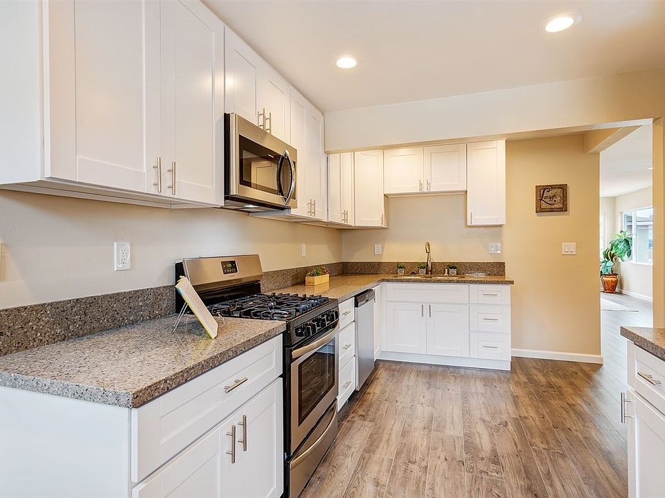 Must see remodeled home w/ no expense spared! New custom kitchen w/ beautiful quartz counter tops, new floors & stainless steel appliances. Master bedroom w/full bath & bonus room/office. Living room w/new modern floors perfect for entertaining! Bedrooms have new carpet & mirrored closet doors. Bathrooms have new modern tiled floors & showers, sinks, white wood cabinets, & brushed nickel lights/fixtures. Modern touches & new dual pane windows throughout home. Big yard! VA/FHA ok!