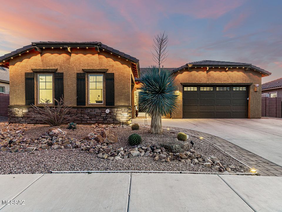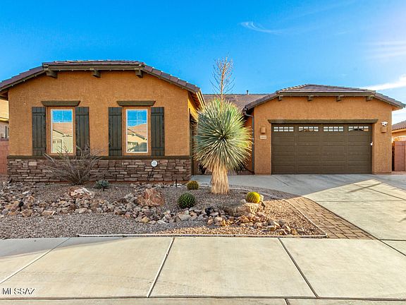 Breathtaking mountain views of the Catalinas, Tortolitas, and Santa Ritas surround this beautifully maintained home! This four-bedroom, three-bath retreat features a desirable NextGen casita--ideal for guests, multi-generational living, or a private home office. Enjoy two open-concept great rooms with spacious kitchen, dining, and living areas designed for comfortable everyday living and easy entertaining. From the main entry, step through expansive sliders to the covered patio overlooking the sparkling pool, viewing fence, and stunning desert landscape. Outdoor living shines with a misting system, pergola, artificial turf, and upgraded irrigation system. Inside, you'll find tile flooring throughout, a soft neutral color palette, granite countertops, stainless steel appliances, a large pantry, and a bright eat-in kitchen area. The primary suite offers a large walk-in shower, dual vanities, and an oversized walk-in closet. Additional highlights include a 3-car garage with epoxy flooring and a whole-home water filtration system.