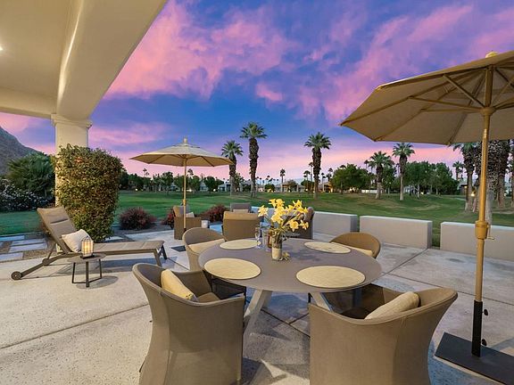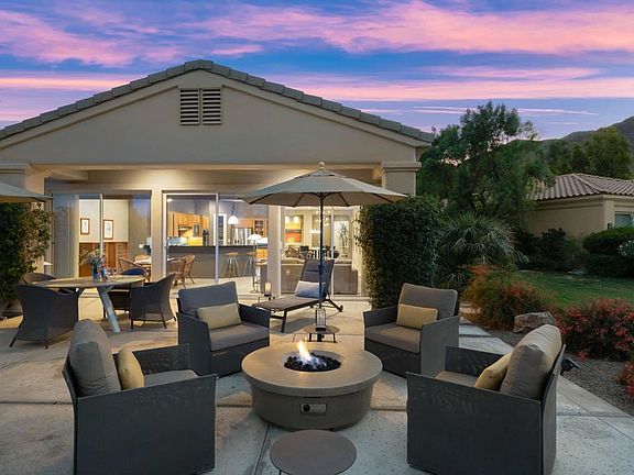 Welcome to your dream oasis in PGA West! This immaculate 3-bedroom, 3-bath home offers luxury living with a wealth of desirable features. Step inside to discover the perfect blend of style and comfort. The interior showcases leather granite countertops, new carpet throughout, and an open floor plan that's ideal for entertaining. Enjoy the elegance of a formal dining area by the wet bar, perfect for hosting friends and family. This home boasts a gourmet kitchen, ensuring that every meal is a culinary delight. And with a golf cart included, you're just moments away from PGA West's renowned Palmer Private course. Bask in the breathtaking views from your extended back yard and patio, complete with a firepit for cozy evenings under the stars. The pristine landscape overlooks the 3rd hole of the PGA West Palmer Private course and offers stunning vistas of the Santa Rosa Mountain. Inside, the master suite features an en suite bathroom with a soaking tub and a walk-in shower. This home is turnkey furnished, making your move-in a breeze, and offers a generous 2819 sq ft of living space. For those who enjoy community amenities, a pool is conveniently located nearby, providing the perfect retreat on warm days. This PGA West gem truly has it all - luxury, comfort, and magnificent golf course views. Don't miss your opportunity to call this incredible property your own!