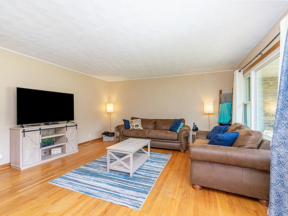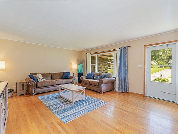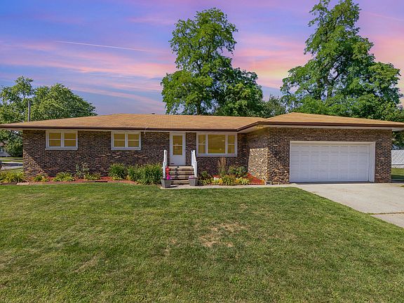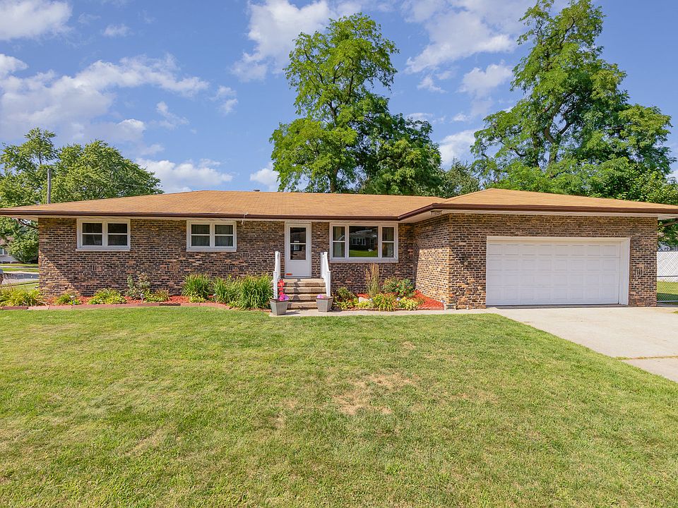 All brick 3 bedroom 1.75 bath ranch on fenced corner lot with 2 car attached garage! Spacious living room has hardwood flooring, eat-in kitchen has custom back splash, laminate flooring and leads to the main level rec-room with newer sliding doors to back patio, updated full bath with double sinks and custom ceramic, 3 bedrooms including the owners suite with private 3/4 bath, the partially finished basement offers lots of possibilities/ great storage & laundry area, central air, new windows in 2016, new hot water heater and more close to Toll Road, 80/94, Indiana Dunes National and State Parks and South Shore Train line to Chicago and South Bend.