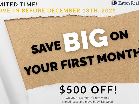 Available: 2025-09-19 - $500 off first months rent with a signed lease and move in by 12/12/2025