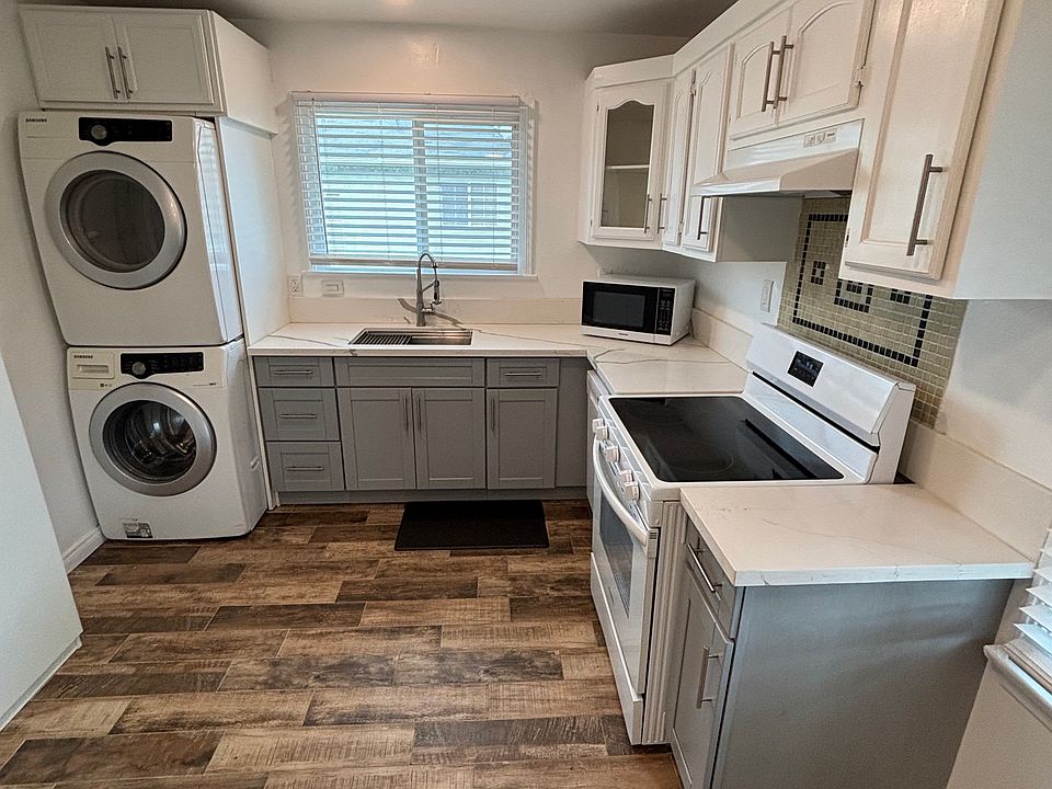 Quiet well-kept residential streetOver-mount sink with disposalNewly renovated kitchenLight-filled corner unitFresh countertopsClean open layoutIn-unit washer and dryer