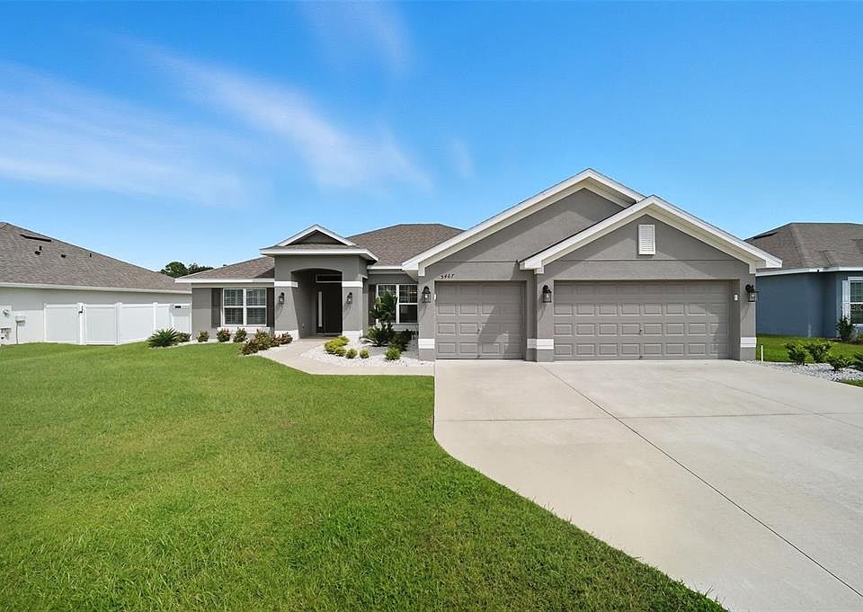 Welcome to this exceptionally maintained 4-bedroom, 3-bath residence with a 3-car garage. Thoughtfully designed, the home offers both formal living and dining areas at the entry, flowing into a spacious family room, open kitchen, and breakfast nook—perfect for daily living and entertaining. The kitchen provides ample counter space, a pantry, and modern appliances. Washer and dryer are included. The primary suite features dual vanities, a walk-in closet, and direct access to the lanai. Three additional bedrooms and two full bathrooms are situated on the opposite side of the home, with the laundry room conveniently nearby. Recent upgrades include plantation shutters, custom blinds on all windows, a water treatment system, and an epoxy-coated garage floor. Ceiling fans throughout enhance comfort, while the backyard is fully fenced and generously sized, ideal for outdoor enjoyment and privacy. This property has been carefully maintained and is truly move-in ready.