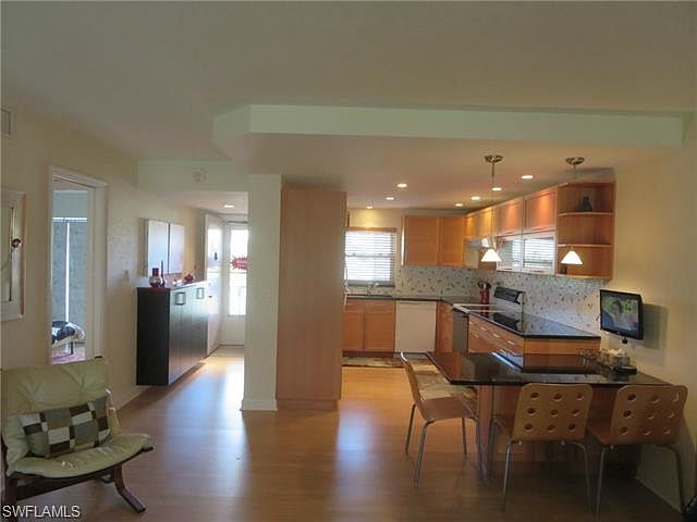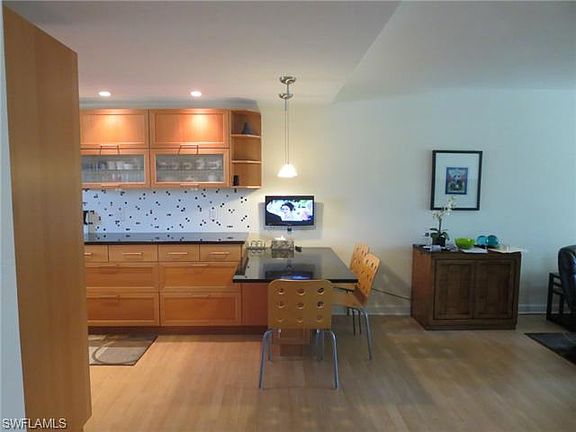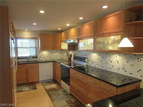 This remodeled condo is close to downtown, shopping, restaurants, golf and our beaches. This is a second floor end unit offering 2 bedrooms, 2 bathrooms with a front and rear lanai! Kitchen offers granite counter tops, glass tile back splash, new cabinets and a breakfast bar. The kitchen was opened up for entertaining your family or guests. Both bathrooms have been remodeled. Includes covered parking space, washer and dryer in unit, custom window treatments and glass enclosed rear lanai. No carpet or popcorn ceilings in this unit. Refinished walls and ceilings, added built-ins, replaced windows throughout, replaced screens, toilets, flooring, baseboards and doors. Your clients will not be disappointed! Unit is move-in ready and perfect for your winter getaway or year round living. Country Club Manor is a 55+ community with common elevators and low HOA fees.