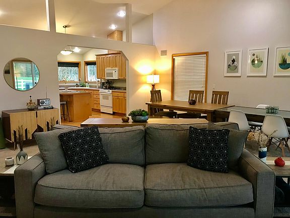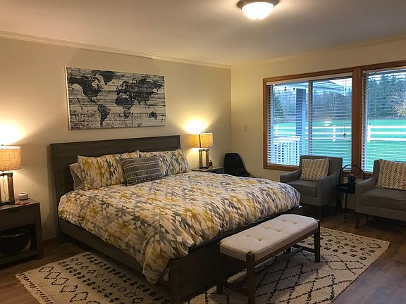 Fully furnished. Kick back & relax in this calm, stylish space w/ seasonal mountain views & peaceful pond. Situated on 5 private acres just 15 min from Bellingham and 45 minutes to Mt. Baker. Take in amazing sunrises, sit around a crackling outside fire, enjoy dinner on the back deck & watching ducks in the pond. When the fruit on the property is ripe for picking enjoy apples, blackberries, plums, kiwi berries.