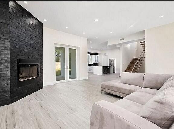 New construction 2-storey modern design home. Solid built using ICF (Insulating Concrete Form) to withstand hurricanes. The house is safe and energy efficient, and will serve the family for generations. Youth and pets friendly and suits for Working-from-Home. No Association. The house features steel reinforced ceilings and floors that are thermally insulated and moisture protected. Flat concrete roof assumes record-years long warranty. No use of traditional wood framing eliminates termite damages! Exterior stucco is coated with paint for minimum maintenance. All aluminum framing windows and doors are low-rate UV and Large Missile Impact safe glass. Made by Bosh A/C system is completed with an Automatic Humidity Control unit. LED lightning throughout interiors and exterior. Custom designed masterpiece single string floating stairs are completed with natural hardwood steps and stainless steel railings that are fingerprints free. Direct Vent Wood Burning Fireplace in bright and open living room. Modern kitchen with matte glass upper cabinets is also equipped with durable hardware for soft self-closing drawers. Cooking exhaust vent filters to outside. All stainless steel appliances include 44-Bottle Dual Zone wine refrigerator. Fine finish materials include granite countertops, marble tile backsplash, and natural stone fireplace. Porcelain tile flooring and trend design vanity cabinets in bathrooms are imported from Europe. Controlled electric heated floors in Master Bathroom and Guest Bathroom. Each bathrooms have an operable window. Solid core 92" toll interior doors assembled with stainless steel hardware and modern hidden hinges, designer handles, and magnetic locks. Plenty of walk-in spacious closets completed with custom organizers. Many more extras! In case of weather emergency the house is equipped with 750-gallon underground propane tank and a backup generator to run entire house powered independently in full capacity for three-weeks or longer.