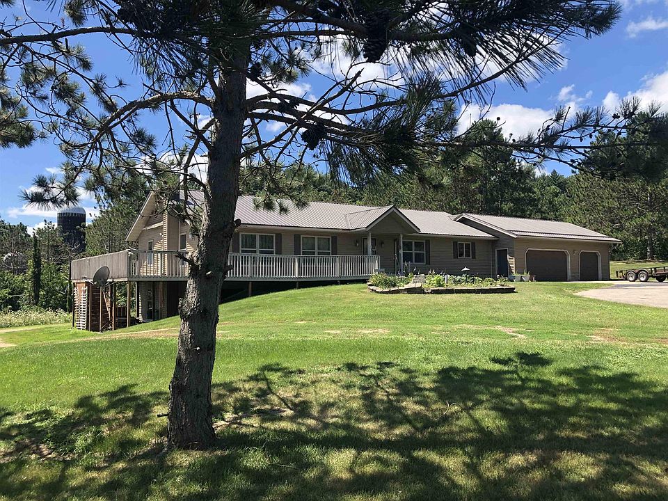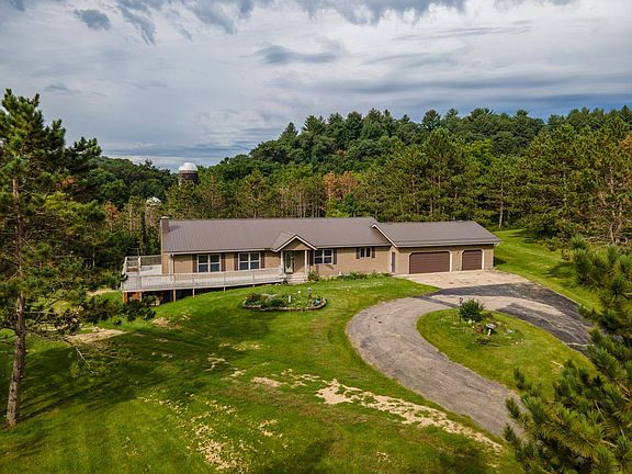Spacious ranch home situated on 8.7 private, partially wooded acres boasts panoramic views from every window. Open floor plan W/wood floors on most of main level & cathedral ceilings. Large eat in kitchen open to family room W/gas F.P. 3 generous bedrooms, 2 full baths & laundry on main level. Mother In Law suite in L.L W/walkout. Back up wood burner in unfinished L.L. Wrap around deck. Joint driveway maintenance agreement. Back patio W/Doll house/garden shed.