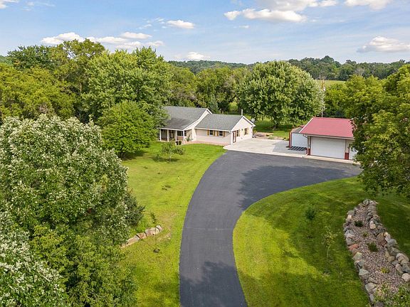 Bask in the comforts of rural living with this charming 3BD 1BA home nestled among the trees on over 2.5 lush green acres. Beautifully landscaped and meticulously cared for, you will fall in love at first sight. The open floorplan allows for easy flow throughout. Enter into a cozy living room showcasing a stone-faced electric fireplace and beautiful bay window that fills the home with natural sunlight. Spacious eat-in kitchen offers plenty of cupboard and counter space with large pantry cabinet for storage. The great room is the perfect place to entertain with a gorgeous wood/pellet burning stove and access to lovely backyard paver patio. Enjoy a summer BBQ, with room for lawn games or roast smores over the firepit. Three bedrooms occupy the level and a ¾ bathroom with luxurious walk-in shower. A laundry closet with mechanical complete the space. In addition, the home offers efficient 6 zone in floor heat. A large detached 30 x 60 pole building has room for RV/boat storage, parking and shop space. One side is heated providing both power & water. Home Inspection has been completed for you. See supplements for photos, tour, Matterport floorplans and more!