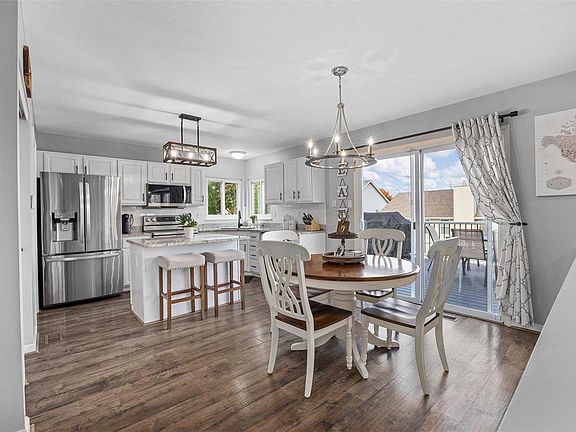 Outstanding 4 bed/2 Full & 2 Half Bath home is ready to move in! Updates everywhere! The elegant kitchen has granite counters, almost new Stainless appliances & updated hardware. The adjoining Great room has a 5 bay window, recessed can lighting and a gas fireplace. Separate formal Living room & Dining room complete the main floor. Just off the kitchen is a large, well crafted deck. Upstairs, the spacious primary bedroom has a vaulted ceiling, a walk in closet and a reach in closet too. A stunning, luxurious, bath with stand alone tub, oversized shower and double vanity completes the suite. Three more generously sized bedrooms and another full bath finishes the 2nd floor. The walk-out lower level is ready to be finished and already has a half bath! There is a professionally built custom patio just outside the walk-out door. The windows and roof are newer. Main floor laundry! Fenced backyard has well manicured landscaping. Close to all highways! Great schools!