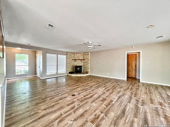 ***** Rare find of 1.77+- 2124 sq foot brick home with metal roof; 3 Bed 2 Bath and large 2 car garage out of the flood zone and fenced. 1.7 acres is totally fenced. A large living room with a wood-burning stove, and library/formal dining room have many windows and exits to the backyard. The home has all new flooring (no carpet), and lots of windows for natural light. Less than 5 minutes from the quaint town of Medina Texas, the Heart of the Apple Orchard/Cafe. 20 Minutes from Kerrville, or Bandera. Several disease-resistant mature trees have been planted over the years which include, several kinds of Oaks, Cedar Elm, the big Tooth Maple, Black Walnut Pistache, and Pecan.