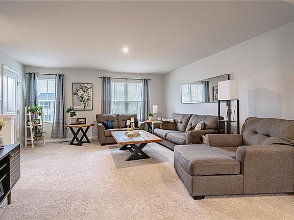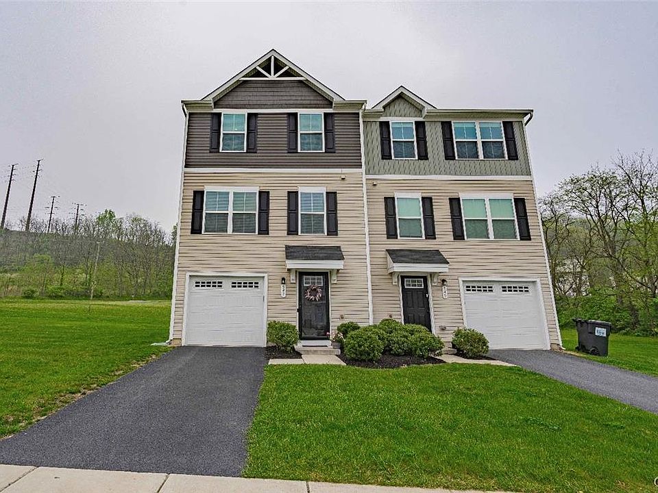 Welcome home to this picture perfect twin nestled on a large lot in convenient location! The one car garage opens into the foyer with closet and utility room access. Buyers will enjoy the open-concept first floor with beautiful white cabinets, center island, and updated stainless appliances. The eat-in space has a slider to a maintenance-free deck, with a patio below. All of this is open to the family room and has a powder room tucked into the corner. Upstairs, find three spacious bedrooms, two full bathrooms and the laundry access. With more than ample storage space, this floorplan is sure to impress! Enjoy the freedom of the lawn mowed and maintained!