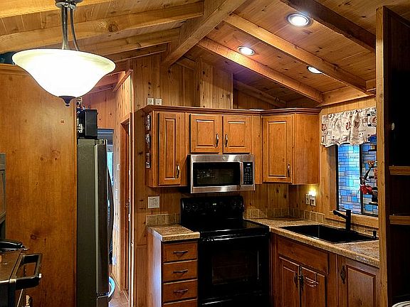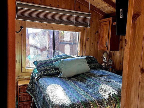 Adorable wooden park model cabin with vaulted ceilings and knotty pine walls in Pinetop, furnished and can be turnkey ready.