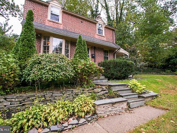 If you are looking for a single home that affords an easy commute to the city this is it. This home is within a half a block of the high-speed train line leave your car in your driveway and walk to the train for a perfect commute to the city~. This Havertown Brick Colonial has original charm with hardwood floors, nice side porch and sits up on a small hill for some privacy. Your tour on this cute home starts in the good size living room with a fireplace, entrance out to the side porch and opens up into the dining room with a bay window and the hardwood floors continue in the dining room. It is opened into the small kitchen that has charm along with nook and crannies that keeps your kitchen organized. There is an entrance off the kitchen down to the finished basement that boasts a large finished room perfect for a family room with an outside entrance out to the shared driveway. Your tour continues on the second floor up the hardwood stairway off the living room at the top of the stairs is the full bathroom with original black and white tiled floor and tiled tub area, a good size main bedroom along with a second bedroom, there is a pull down stair for access to the attic area. Great location in Haverford Township area boasting good schools and easy commute to the office, shopping and restaurants. This is a great starter home with the charm of yesteryear.