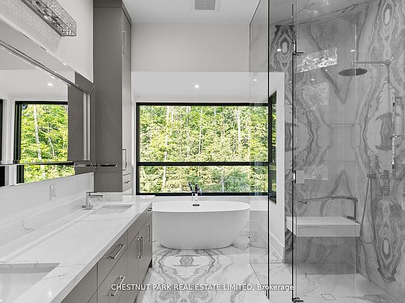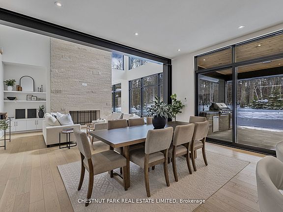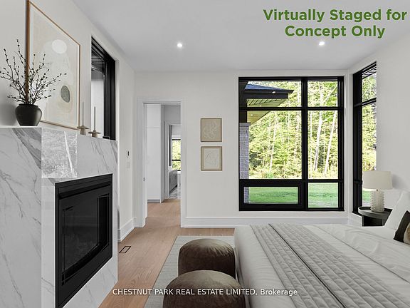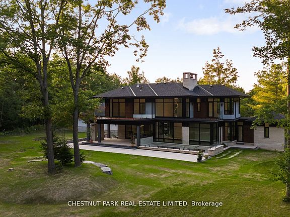 Over 11 acres - set in a premium location, on a highly coveted road in Uxbridge, this contemporary modern David Small Designs masterpiece was meticulously crafted with no expense spared. Newly constructed custom residence boasting 4+1 bedrooms & 6 bathrooms. The elegant facade features clean lines, organic textures, & expansive glass windows. Accentuated by rich wood tones & limestone detailing, this home blends beautifully into the breathtaking landscape. Upon entry, soaring ceilings & abundant natural light greet you. The gourmet kitchen & servery combine functionality with luxury. Two primary suites featuring walk-in closets, gas fireplaces, 5 piece ensuite, & private outdoor space. 3 more bedrooms, each with an ensuite & walk-out to decks. The lower level offers an unparalleled entertaining experience featuring a fully equipped second kitchen, recreation room & access to the outdoors. This premier resort-like property provides seamless indoor/outdoor living. Both an entertainer's dream & a private oasis, the outdoor space encompasses a large grassy yard & a stunning cabana, with a fireplace feature, an outdoor kitchen, & dining space. The estate promises leisure & luxury for friends, family, & party guests. The main house garage & second attached garage fit 5 cars. Only a 45 minute drive to Toronto, this residence stands as a testament to luxury living, seamlessly fusing technology, design, & comfort for an unparalleled living experience. **EXTRAS** Recreational options are boundless with cut trails throughout the entire property. The property backs onto lush conservation land and trails, enhancing its serene, countryside appeal. Minutes away, is the vibrant community of Uxbridge.