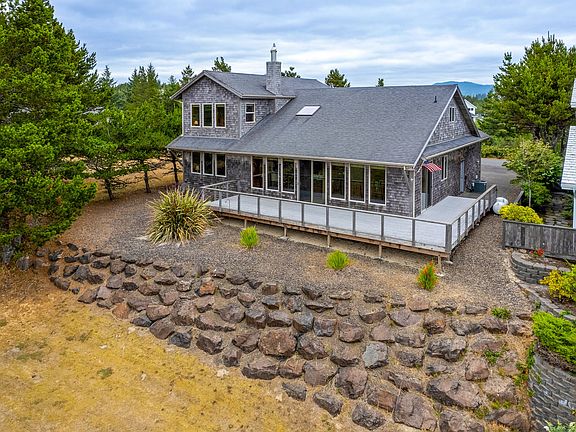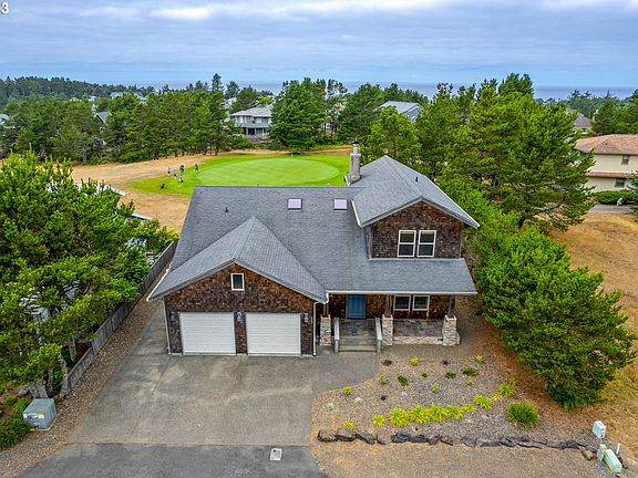 Gorgeous custom home with high-end features located on the Manzanita Links Golf Course with oceans views. Perfect home for entertaining with open floor plan kitchen, dining and living room; travertine marble tile floors. Vaulted 18' ceiling with lots of natural light from skylights. Custom solid cherry cabinetry and details throughout home by local tradesmen. This property is turnkey - sold furnished including high end leather furniture and the 4-person golf cart! Low maintenance yard and home. 9' ceilings throughout, both 1st and 2nd story. Wraparound deck with gas plumbing for BBQ. EV charging outlet in 2 car garage. 2 bedrooms/2 baths on main floor, 2 additional bedrooms and 1 bath upstairs.