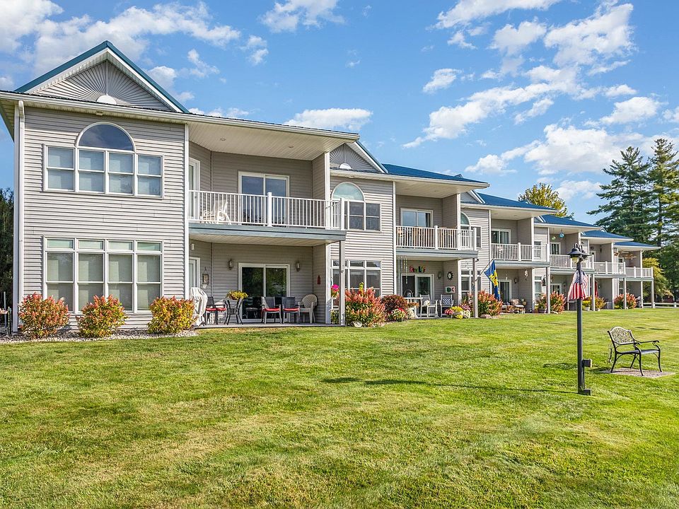 Enjoy riverfront living at its finest in this beautifully renovated 2-bedroom, 2-bathroom condo in Bangor Township. Situated on the second floor, this must-see unit offers a blend of luxury, convenience, and stunning water views. Inside, the gourmet kitchen boasts quartz countertops, modern cabinetry, and updated fixtures, flowing seamlessly into bright living areas with durable vinyl flooring. The primary suite features a spacious walk-in closet and a private 4-piece bath. Step outside onto your private balcony overlooking the river, accessible from both the living room and primary suite—perfect for morning coffee or evening sunsets. Take full advantage of dock access to park your boat, making waterfront living truly effortless. Additional highlights include a 2-car detached garage, a private storage unit behind it, and a low $200/month HOA fee. With stylish updates, water access, and serene views, this condo is the lifestyle upgrade you’ve been waiting for.