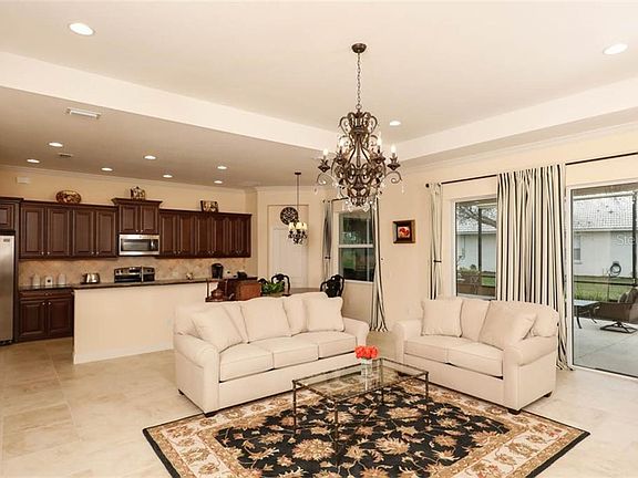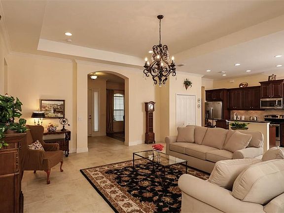 In Sawgrass, a gated golfing community this Stunning Neal Built home on gorgeous professionally tropical landscaped corner lot is second to none! A Great room style, w/volume, coffered ceilings, extensive crown molding, 5 inch baseboards, 3 bedrms, plus office/den, 2 baths, 2 car garage home. Beautiful kitchen w/wood cabinets, granite counters, backsplash, top of the line appliances, breakfast bar & breakfast area, everything upgraded thru out home! Custom laid ceramic tile floors are complimentary to foyer entry, great room, kitchen, breakfast area & hallways. Enter home from paver brick driveway, walkway to front entry thru exotic palms, colorful blooming hibiscus making this a tropical paradise. Very open & light offering you sunshine w/ambiance of Golf course living, bordering cart path & views of golf course from extended lanai. From great room the bedrms are a split plan giving privacy to all. Master suite has coffered ceilings, chandelier, carpet, walkin closets, master bath w/sep tub & shower, vol ceilings, dual sinks, water closet, upgrades from the faucets up! Bedrms 2 & 3 never been used, bath 2 w/tub/shower. Bonus room, office/den, choice of use located off kitchen, breakfast area assures privacy to all bedrms. Inside laundry w/storage, garage has volume ceilings for extra storage, pulldown stairwell, 50 gallon water heater, whole house surge protector, the list goes on! Large lanai (plumbed for kit) backs to cart path allowing views of golf course but keeps privacy, extra space to next home.