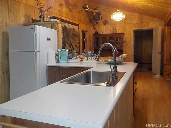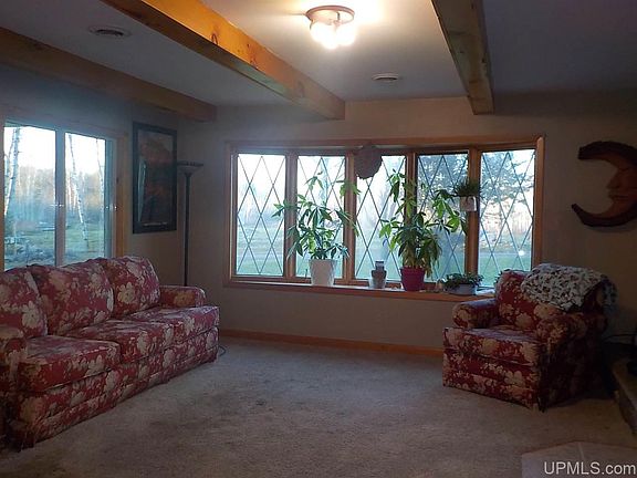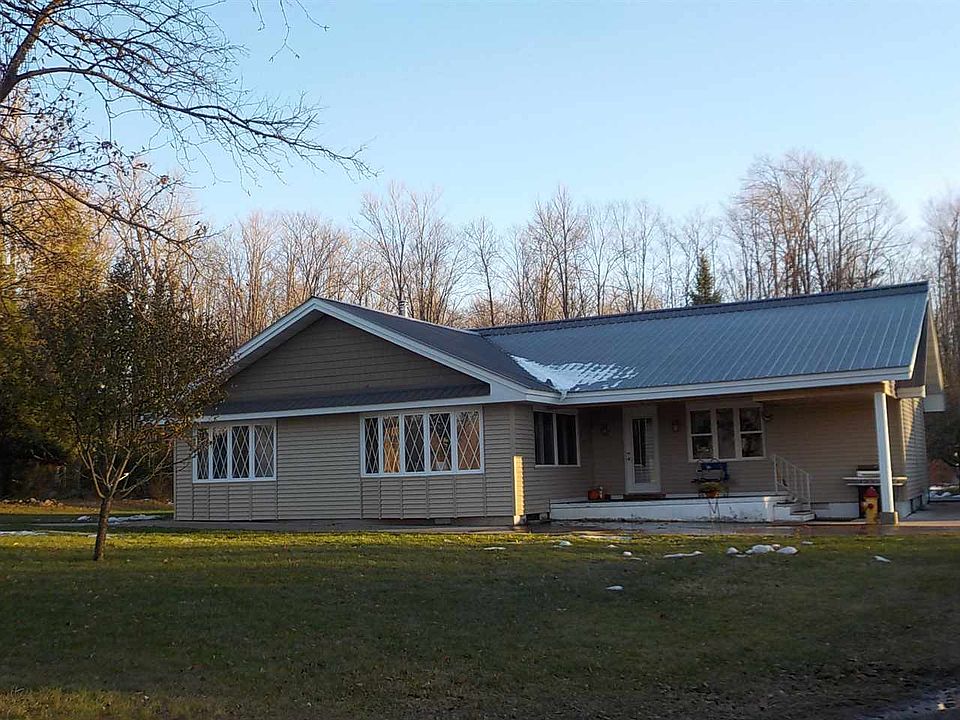 End of the road country home situated on 45 acres wooded with mostly maple and basswood and bordered on 3 sides by CFA lands for hunting and recreation. A recent remodel of the 2+ car detached garage is underway to a proposed 1 bedroom apartment. There is a large 42x54 pole building for all your storage needs. This 4 bedroom, 2 bath ranch style home has been well cared for with a metal roof, vinyl siding, many newer windows, custom wood interior walls from wood harvested from the property, added insulation, newer boiler plus PEX in-floor heating in the crawl space. Additions were added in the 1980's. Master BR has a walk-in closet, master bath, sauna and sliding door to back yard deck. There is a supplemental outdoor wood furnace for the house and pole building which has in floor heat. Note: Current owner has never used the outdoor stove. There are several small animal barns and/or storage sheds which have housed a variety of animals including but not limited to chickens, turkeys, goats, pigs etc.. Plus there is a large fenced garden area with raised beds, apple trees, strawberries, blueberries, asparagus, 2 varieties of grapes along with a hoop house for starting your plants early. Sheltrow Rd was recently blacktopped. Driveway is owned into property from road to the house and is maintained by the owners.
