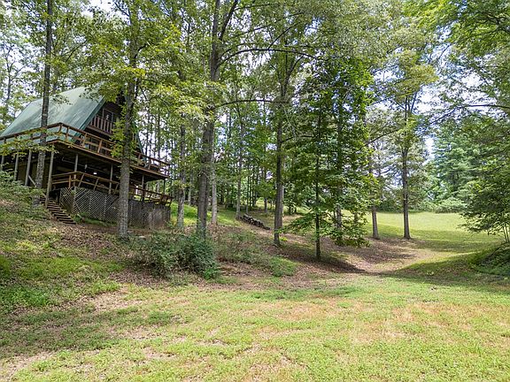 PRICED TO SELL AT $259,900. SELLER IS MOVING OUT OF STATE. Escape to the mountains with this one-of-a-kind 3BR/3BA A-frame on 2.64 gentle UNRESTRICTED, private acres —The land offers a great mix of open space and woods, complete with a fire pit area for relaxing under the stars and enjoying the peaceful surroundings. Inside, this spacious 3-level layout offers flexibility for full-time living, get-away or rental potential. Cozy up by two wood-burning fireplaces, adding warmth and rustic charm throughout the home. A bedroom and bath on the main level and two additional bedrooms each with charming outdoor balconies and bathroom on the upper level. Large bonus room, 3rd bathroom and storage complete the lower level. Outdoor living is just as inviting, with over 1,000 sq. ft. of porches and decking designed to take full advantage of the private, tranquil setting this property offers. Major upgrades, including updated plumbing and electrical, a new septic tank, and fiber optic internet run directly to the home for high-speed connection. A 38x12 outbuilding with electricity adds valuable space for a workshop, extra storage, or all your outdoor toys and equipment. Easy access of paved roads, large driveway for ample parking and a private well are just a few more bonuses of this one of a kind furnished mountain retreat.