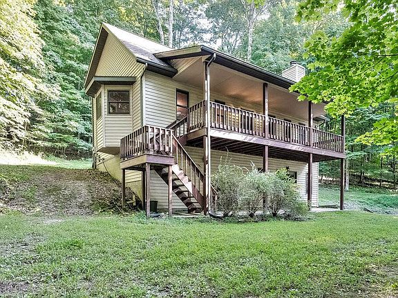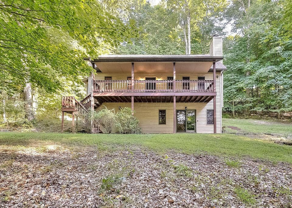 Dream country retreat! This beautiful Apple Valley property nestled on 1.36 wooded acres (2 lots) with the possibility of a 3rd lot making it 2.078 acres! This 1.5 story home sits peacefully back off the road and features 2-4 bedrooms, 2.5 baths, and a walk out lower level. Enjoy the large appliance filled kitchen with large walk-in pantry, atrium doors off the dining room leads to the large rear deck that would be great for entertaining. From the living room you walk out to a large covered front porch for relaxing. The large owner's suite has a full bath, walk in closet and a shoe closet. The 2nd floor features 1 possibly 2 bedrooms or the second room could be a family room, with a full bath. The lower level is plumbed for another half bath, laundry room and possibly 4th bedroom