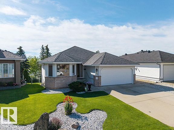 Walkout Bungalow Oasis in Twin Brooks – Backing Onto Nature! WOW! Tucked away in one of Edmonton’s most picturesque communities, this stunning Walkout Bungalow offers OVER 3000 sf OF BEAUTIFULLY FINISHED LIVING SPACE. Imagine relaxing on your upper or lower deck, taking in breathtaking views of trees and water, with nothing but peace, birdsong, and serenity around you. Located on a quiet cul-de-sac in prestigious Twin Brooks, you’re steps from the ravine, parks, and George P. Nicholson Elementary School—with the Whitemud and Blackmud Creeks converging nearby, creating a one-of-a-kind community vibe. Inside, you’ll find thoughtful upgrades throughout: Brand New Garage Door & Opener; New Modern Light Fixtures; New Deck Cover + Garden Shed; Hot Water Tank, Security System & Underground Sprinklers; Beam Central Vacuum System; Laundry Room with BI Ironing Bd. Open Concept, cosy Living Room with FIREPLACE AND GLORIOUS VIEWS Walk Out Basement is a dream. Huge Family room and a Guest Bedroom with Ensuite!