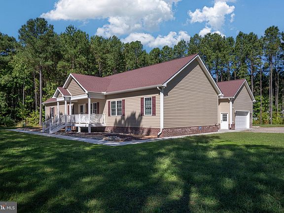 Welcome to 547 Twin Harbor Road, a beautifully maintained home on 1.44 acres in the sought-after waterfront community of Twin Harbor. This home is an entertainer's delight. With 2,821 square feet of elegant living space, this property blends craftsmanship, comfort, and coastal charm — all within minutes of the Chesapeake Bay. This inviting residence offers spacious open living areas with wide doorways, dimmable lighting, and maple hardwood flooring throughout. Interior blinds, central heating and air, and an abundance of natural light create a warm, refined atmosphere. Interior Features: Gourmet Kitchen & Dining, Italian marble flooring in the kitchen and dining area. Antique white wood cabinetry with granite counter tops. Large center island with drop lighting and raised bar seating. Whirlpool stainless steel appliances (4-door refrigerator, range, microwave, dishwasher) Kitchen window provides cheerful natural light. The laundry room is equipped with washer, dryer, wash tub, freezer, and Italian marble flooring The warm family room is inviting with Maple flooring, wood pellet stove with encasement and shelf, ceiling fan. The den also boasts of Maple flooring, ceiling fan, comfortable and bright Bedrooms & Bathrooms Primary Suite: Features a huge bedroom with tray ceilings ideal for our luxury living, along with two massive walk-in closets and dressing room, maple flooring, and ceiling fan. Primary Bath: Spa-inspired with antique white cabinetry, granite counter tops, granite flooring and walls, jetted soaking tub, separate rain shower with granite bench, linen closet, and comfort-height toilet. Bedrooms 2, 3, & 4: All bedrooms can accommodate king-size beds (bedroom 4 fits two twins), each with maple flooring, ceiling fans, and large closets. Second Full Bath: Antique wood cabinetry, granite counter tops, granite flooring and walls, full bathtub, linen closet, and comfort-height toilet. Garages & Exterior Features: Attached two-car garage with epoxy flooring, windows, and breezeway connecting to the home with an exterior entry.Detached two-car garage offers additional vehicle or boat storage.This insulated (spray foam)steel garage/storage unit has electricity and lighting — ideal for cars, tools, beach gear, or golf cart storage. Composite deck and front porch perfect for low maintenance outdoor entertaining. The Spa nook with lighting holds a 4-seat hot tub (as-is) Landscaped grounds and private water well. 24 kW whole-house generator with a dedicated 325-gallon propane tank. Twin Harbor community provides private beach access — perfect for kayaking, swimming, and fishing.