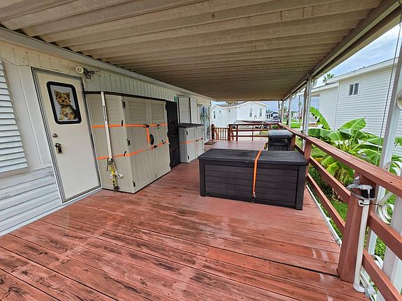 Meticulously maintained, furnished park model with full length covered deck, 2 new tv's, 3 storage sheds, water filtration plumbed to all faucets, new skirting, fairly new A/C, toilet, kitchen sink, and there are vinyl-covered window coverings for storms or extended time away, new generator that can be thrown in for the right price, You really must see it in person to appreciate the upkeep and condition of it all--come take a look!