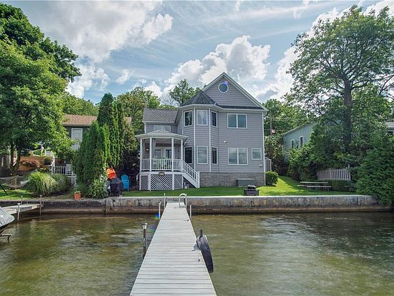 Stunning Conesus lake waterfront home. Seller thought of every detail when constructing this home built in 2007. Large, open kitchen with breakfast bar. Stainless appliances including additional freezer and ice maker. Kitchen opens to spacious great room with views of the lake from every angle. Graceful, circular porch outside the kitchen door. Perfect for relaxing lakeside. Level entrance from the street. Total of 4 bedrooms and 3 full baths.