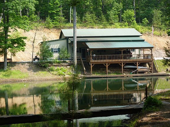 A unique little paradise for the RVer who has been traveling from park to park and is now looking for a nice quiet place to relax in privacy. Just turn off the water and electric when you want to travel again and away you go. When we found this property in 2004, it was pretty much bare-bones but we could see all the hidden potential in it. One of the pictures shows the property in its original state. It basically had the building which was a workshop and hook-ups for 2 RVs. Over the years we raised the height of the driveway and landscaped about 40 feet of the hill behind for more usable land. We added a covered and cemented carport and built a covered deck overlooking the 1 acre pond. We added a working waterfalls and added a fountain to the pond. The pond is stocked with carp catfish bluegills and bass. We did major renovation to the inside of the building and turned it into a cozy little apartment. We added on a bedroom and utility garage and tiled the floors. We also added a sliding glass door going out to the deck and put in a kitchen. The 2 story workshop is every mans dream with plenty of room for storage etc. We also added a covered RV carport for protection and preservation of our motor coach which we just recently sold. Again as you can see in the pictures, we built a covered fire pit area which has access to water electric and TV reception. We have been avid ATVers since Tn has all kinds of areas for riding the mountains and we built trails on our 8 acre property for taking little sunset rides around the woods. The land was originally set up for building a home on the property and there is a septic tank all ready installed. Plus the city water to the property is another plus and also there is 200 amp service. Give us a call at 239-560-5119 for any questions [Terry]