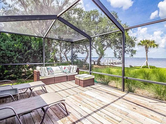 Custom Built One Story Nicely Elevated WATERFRONT HOME located on Gated Innerarity Island just minutes to the white beaches of Perdido Key Florida! This beautifully updated home is located on approx 100' of waterfront with gorgeous Boat house and TWO Lifts overlooking Perdido Bay where Dolphins swim and play! Bring all water toys, bikes, golf carts, paddle boards etc! This gated community provides plenty of space to walk, bike and enjoy the water in your own backyard or a community park nearby The moment you enter the front door of this nicely elevated all brick home , you will be fixated on the waterview from the open floor plan with amazing views of the water from both the Kitchen and Spacious Living area... perfect for entertaining! Wonderful Features such as Travertine tile floors, Pella windows/doors, new roof, recessed lighting, fireplace, newer cabinetry, stainless appliances, granite, kitchen island, updated bathrooms including beautiful stand alone tub and separate shower plus walk in closet in the Master Suite. Beautiful landscaping with a Huge grapefruit tree and fig tree! Relaxing sunroom and two screened decks for more waterfront enjoyment! Renewal Nov quote insurance $4934 and $614 Flood ins