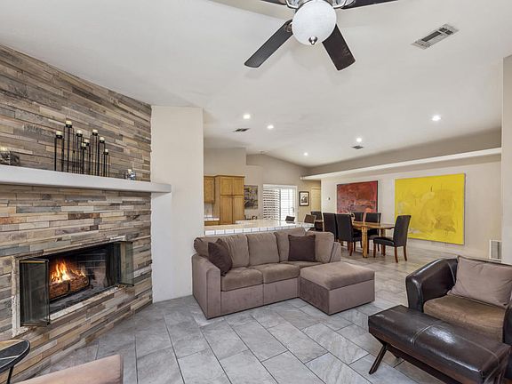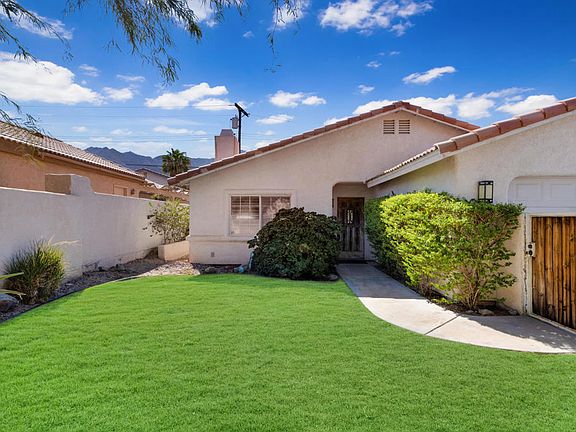 Light open floor plan just a couple of blocks from the very top of the La Quinta Cove. Highly desirable Great room with cathedral ceilings. Beautiful stacked stone wood-burning fireplace in corner of the living room. Large open kitchen with plenty of counter space and breakfast bar. Plantation shutters. Stylish rectangular ceramic tiled floors throughout except for the bedrooms and bathrooms. Perfect home for hosting parties. Separation of bedrooms makes this home great for entertaining overnight guests. Two full baths.Large private gated walled front courtyard. (Grass in courtyard has been photoshopped in.) Private yard with modest sized pool and several sitting areas. Two car attached direct access garage with air conditioning vent for optional cooling during the summer months. Close proximity to multiple trails and destinations, including Bear Creek Hiking Trail, Cove to Lake Trail and Cove to Oasis Trail. Just a few minutes drive to the world-class dining and shopping offered in Old Town La Quinta. Cosmetic fixer priced to sell in today's market. One of the best values and best locations in the La Quinta Cove.