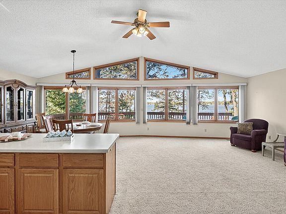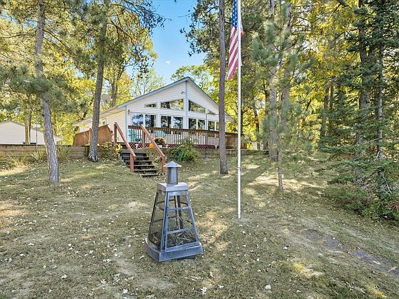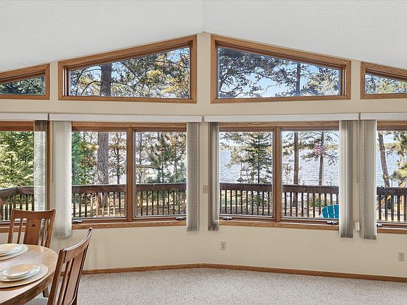 Sandy swimmable beachfront right at your doorstep, ideal for relaxing summer days, water activities, and creating lasting memories. Easy access to the lake within just a few steps. This property is a rare opportunity to own a peaceful lakeside retreat with all the charm of Minnesota lake living. The full width lakeside deck is ideal for coffee, cocktails and sunsets. From the window filled prow front home, the lake views are exquisite. This rambler style year-around home boasts a sun filled open floor plan perfect for entertaining family and friends, four bedrooms, three baths, large lake facing main living area and a large functional kitchen with center island. A spacious 26x30 detached garage, 12x14 shed and 10x16 boat house, all with concrete floors and roll up doors. Thoughtfully situated on a beautiful treed 1/2 acre lot. Dock is included, let the fun begin!