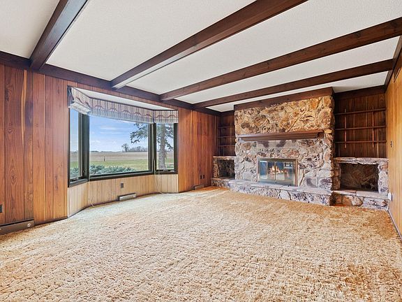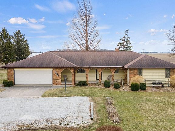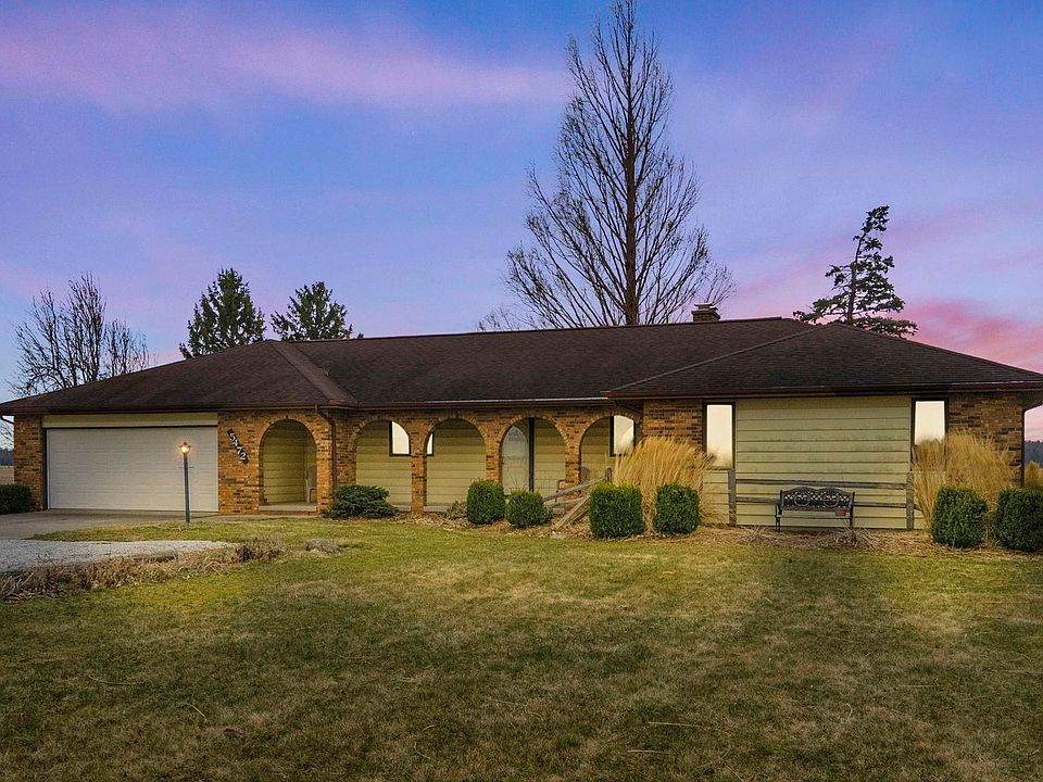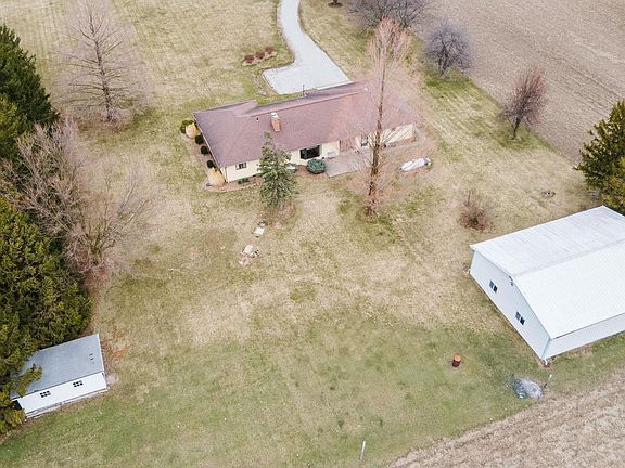 Lots of potential! Check out this 3 BR 2.5 BA 1,666 sq ft ranch situated on nearly 5 acres of land with a 36'x48' outbuilding and attached 24'x24' two car attached garage for all your toys and storage. The home needs some cosmetic updates to bring it up to date. It features a large family room with fireplace and large window that provides natural light. Good sized dinning room with patio door leading to the outside patio. Nice kitchen with good cabinets with plenty of storage. Down the hall you will find 3 good sized bedrooms and two full baths. The unfinished basement boasts 1650 of space there is a partially completed family room and second kitchen area. Home is all electric with a electric heat pump and AC. The house has a whole home generator. 2.5 of the 5 acres are tillable land the farmer would like to continue to farm.