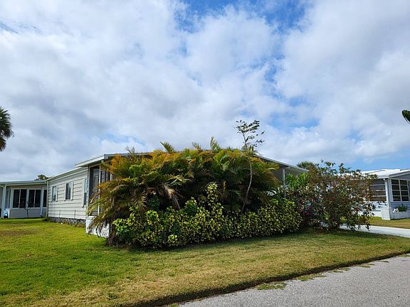 FURNISHED AS PICTURED AND EZ-GO GAS GOLF CART INCLUDED! This lovely 2 bedroom/2 bath home was renovated in 2019 and boasts luxury wood look porcelain tile flooring through main living area, baseboard and chair rail moldings, high end lighting and ceiling fan fixtures, new kitchen, new baths with spacious tiled showers and attractively framed windows and doorways. New water heater & plumbing in 2021 and Vapor barrier update in 2022. The open concept floor plan provides a sunny living area and cathedral ceiling lends to the spaciousness of the home. A spectacular granite kitchen is perfect for entertaining and offers abundant storage space with pull-out drawer pantry, full wall of upper and lower cabinets and center island with pennant lighting. Off of the living room via French doors is a very peaceful and relaxing tiled screened porch with view of the lake and a lush tropical landscaping provides the perfect amount of privacy. Both bathrooms have been nicely updated with large tiled walk-in showers and comfort height commodes. A double utility shed allows for a dedicated laundry room with washer and dryer and smaller storage space for tools and beach supplies. The park auditorium is directly across the street for easy access to a large lap pool, whirlpool and outdoor kitchen. Camelot Lakes is a beautiful, gated resort-style community where your monthly lot rent of $1702 includes water, sewer, trash/recycling curbside, lawn mowing, taxes and endless upscale amenities and organized activities. Pet policy states up to 3 dogs/cats allowed with no weight limit, non-aggressive breeds. All shopping needs, great restaurants and entertainment are just minutes away via quiet back roads or easy I-75 access. Tired of having everything at your fingertips? Take a 7 mile drive to the beautiful quartz sand beaches of Siesta Key. Take a dip, throw out a line or enjoy an energizing walk along the shore. A never ending supply of quaint shops, top restaurants and some of the nicest people you'll ever meet!