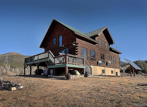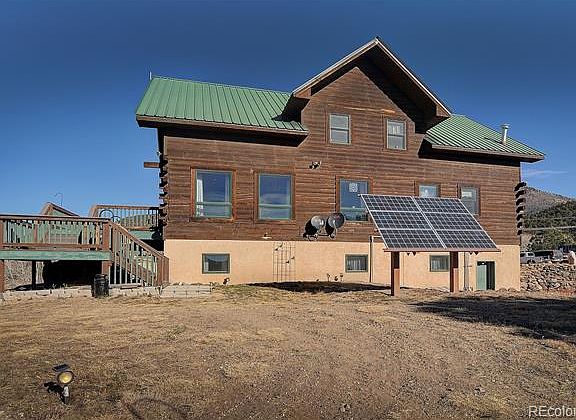 This custom built, off-grid home is all you need for a self sustaining lifestyle! This 80 acre parcel offers majestic mountain views for miles, secluded and private and borders thousands of acres of BLM land and includes 2 domestic wells with a creek and water rights to the spring, a 24x24 barn w/loft and over 600' of TREX decking around the home. 6x8 D-log siding construction, in floor radiant heating, storage space galore, high altitude Anderson windows, oak cabinets w/pullout shelves in kitchen and a 6 burner commercial grade stove. Commercial steel roof w/some commercial grade steel doors, concrete and tile floor on main level as well as 12" thick walls, solar power, 300 gallon water storage for on-demand use. Lots of visiting wildlife and a 5th wheel camper included.