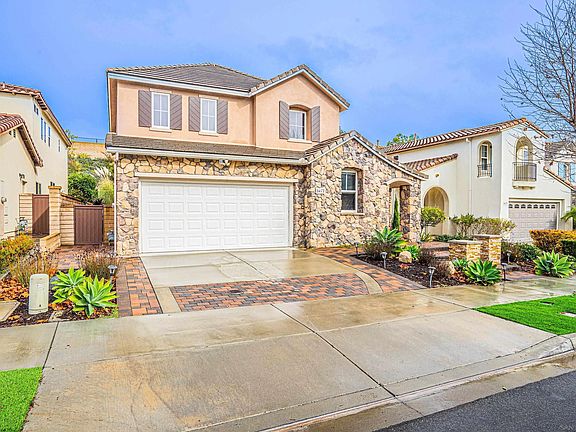 Beautifully landscaped and cozy private backyard in Pacific Highland Ranch, this lovely home has 5 bed/3 bath with office and loft. Gourmet kitchen has quartz counter tops and modern white custom cabinetry with stainless steel appliances. Hardwood and porcelain tile flooring throughout the whole house, and new paint. The master bedroom has his and hers walk-in closets, dual sinks, and roman style tub. Resort style community center has an Olympic sized swimming pool and indoor and outdoor recreation options. Walking distance to shopping and award winning schools (PHR town center, Cathedral catholic high, CCA high, Sycamore Ridge elementary, Pacific Trails middle).