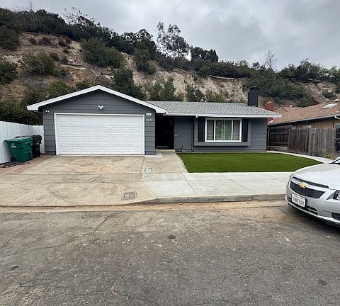 SDSU Close! Single level home w/ large lot on a cul de sac. Newer paint & flooring. Kitchen upgraded with granite, stainless steel and cabinets. Newer garage door. Bathrooms w/ newer cabinets and granite. Privacy & location! Free street parking- NO parking passes required on this street. Large back yard with no homes behind you! This home also has a Den to provide an extra space for whatever you might need it for!